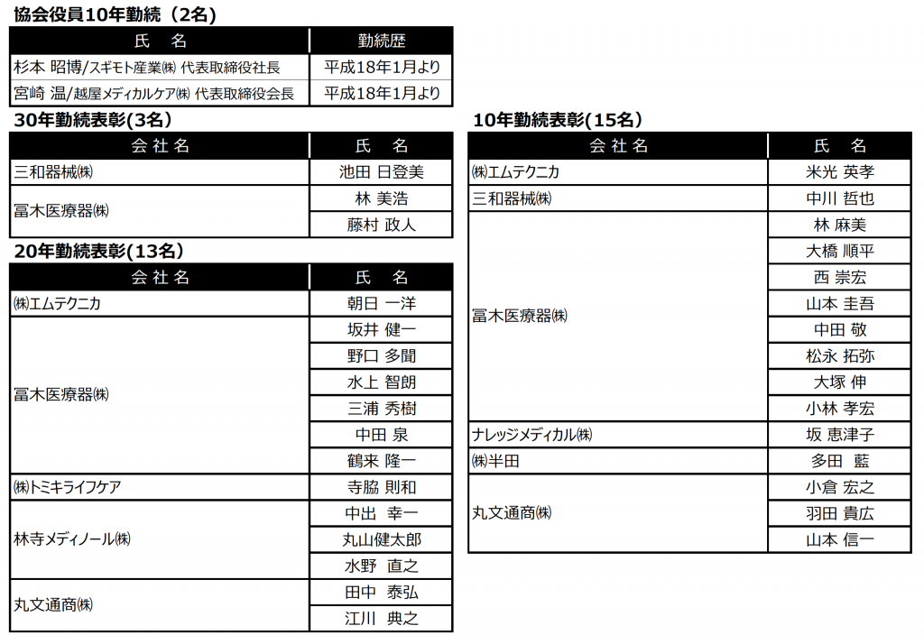 平成30年度薬事功労者知事表彰の推薦依頼が当協会に対してあり、正会員企業の皆様にご案内しましたところ該当者をご推薦いただきました。
