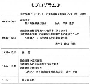 | 平成30年度医療機器販売業・貸与業営業所管理者及び医療機器修理責任技術者に対する継続的研修