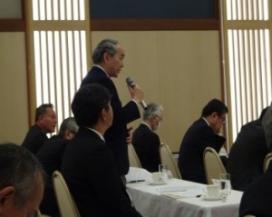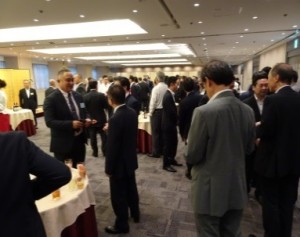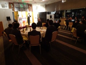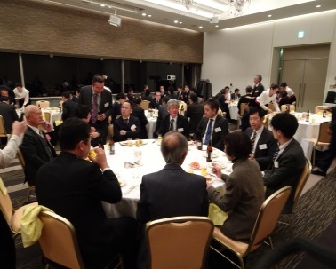 本年度の講演会では能登ワインの醸造元、㈱ハイディワイナリー代表取締役社⻑ ⾼作正樹⽒から 能登への移住、起業、葡萄の栽培からワインの⽣産に⾄るまでのお話をお伺いすることが できました。能登の⼟壌や⾵⼟、そこから出来上がる⾵味豊かなワインを熱⼼に語られるとともに、 ベンチャー企業としての資⾦調達の⽅法等もご講演されました。 講演会終了後は⾼作社⻑も交え、同ホテルで2F「ガーデンテラス」において、ハイディワイナリー 産の各種ワインの試飲会も兼ね「ビアパーティ」が開催されました。 ビアパーティには正会員企業69名、賛助会員2名が参加しました。