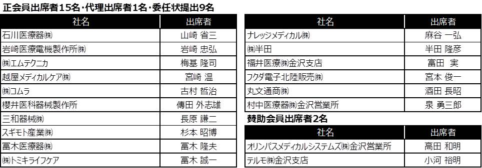 | 石川県医療機器協会定期総会・従業員永年勤続表彰式 平成27年1月23日(金)16:00-17:30 KKRホテル金沢 | |||